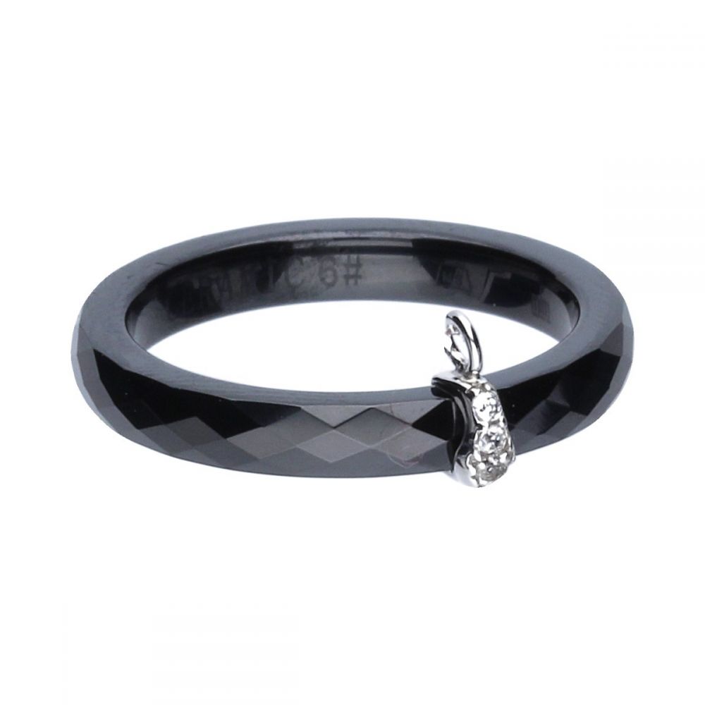 FACETTIERTER RING, SCHWARZE KERAMIK, ZIRKONIA, RHODIUMSILBER, OFFENER RING ZUM AUFHÄNGEN DES ELEMENTS
