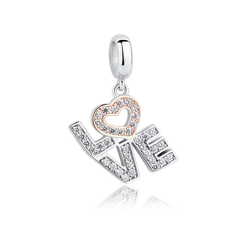 ANHÄNGER FÜR EIN MODULARES BEAD-ARMBAND, DURCHMESSER 3 mm, 925er SILBER, RHODIUM UND ROSA VERGOLDET, WEISSER ZIRKONIA, LIEBE, HERZ.
