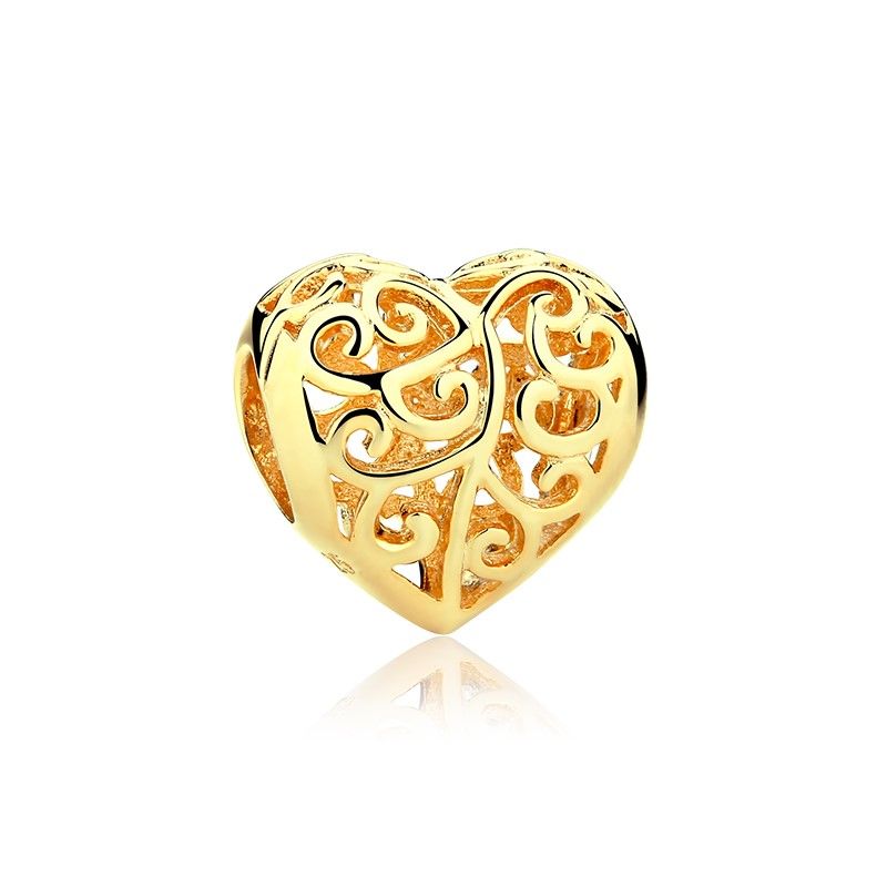 MODULARER ARMBANDANHÄNGER IN PERLENFORM, DURCHMESSER 3 mm, 925er SILBER VERGOLDET MIT 24 KARAT GOLD, DURCHGEBUNDENES HERZ, GRÖSSE 10 mm X 11 mm.