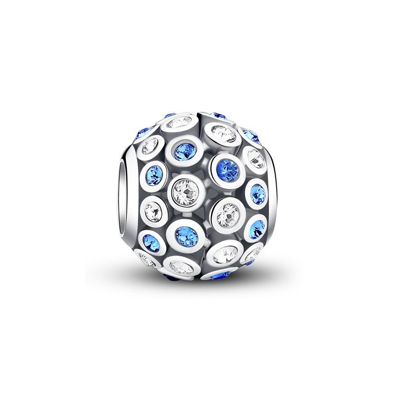 PERLENANHÄNGER GEEIGNET FÜR MODULARE ARMBÄNDER MIT EINEM DURCHMESSER VON 3 MM, 925 SILBER, RHODIUMBESCHICHTET, BLAUER UND WEISSER ZIRKONIA.