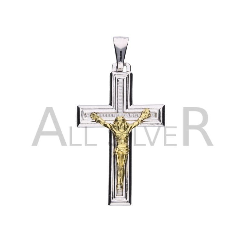 KREUZ MIT BILD, KOMBINATION AUS 925 VERGOLDETEM UND RHODINIERTEM SILBER, HÖHE OHNE ANHÄNGER CA. 3,5 CM.