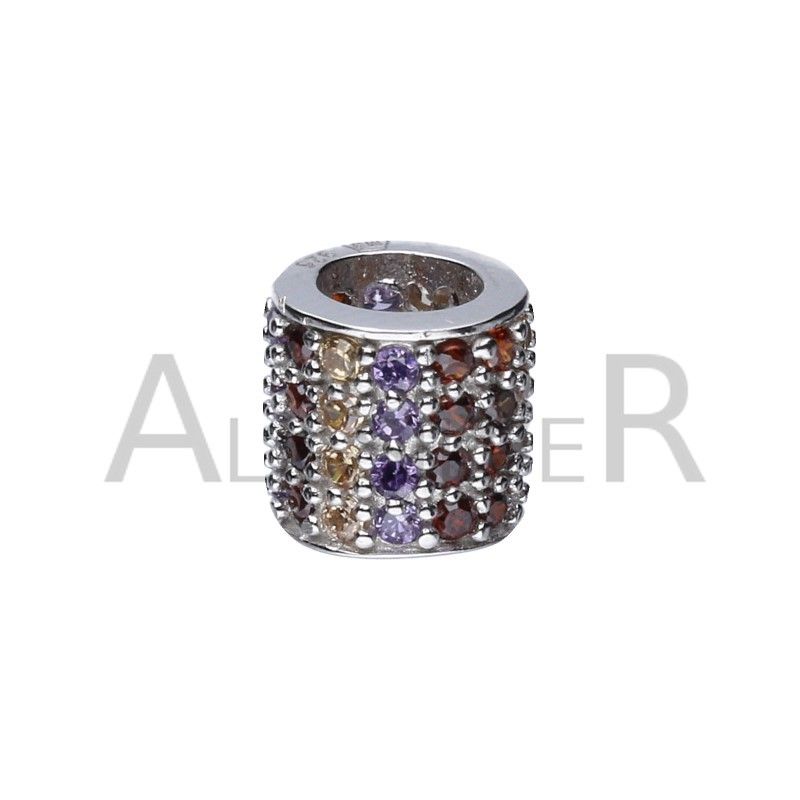 PERLENANHÄNGER GEEIGNET FÜR MODULARE ARMBÄNDER MIT EINEM DURCHMESSER VON 3 MM, 925 SILBER, RHODIUMBESCHICHTET, MEHRFARBIGES ZIRKONIA, ZYLINDER.