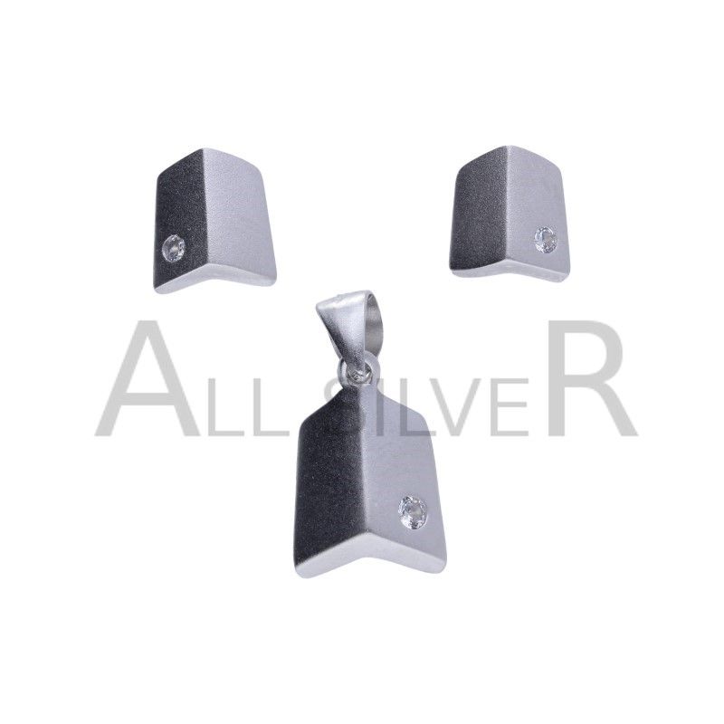SET AUS OHRSTECKER + ANHÄNGER, WEISSER ZIRKONIA, RHODIUMBESCHICHTET, SANDBESCHICHTET/SATINIERT. 925 SILBER. OFFENES BUCH.
