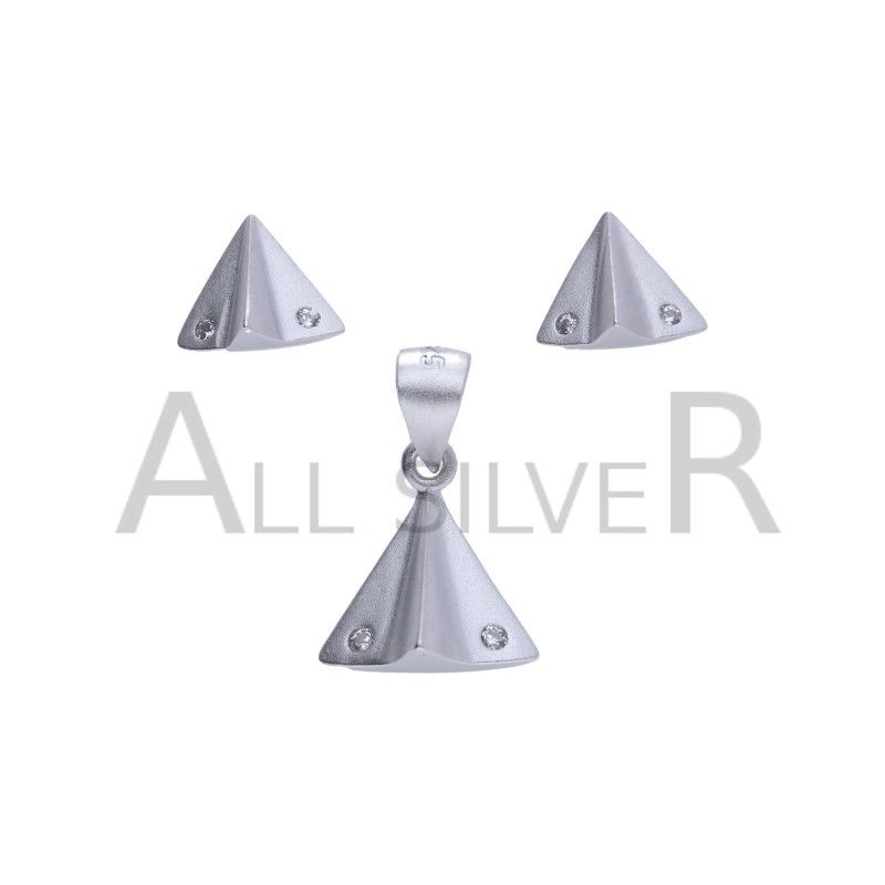 SET – PAPIERFLUGZEUG, OHRRINGE + ANHÄNGER, WEISSES ZIRKONIA, rhodiniertes, sandgestrahltes/satiniertes Silber 925