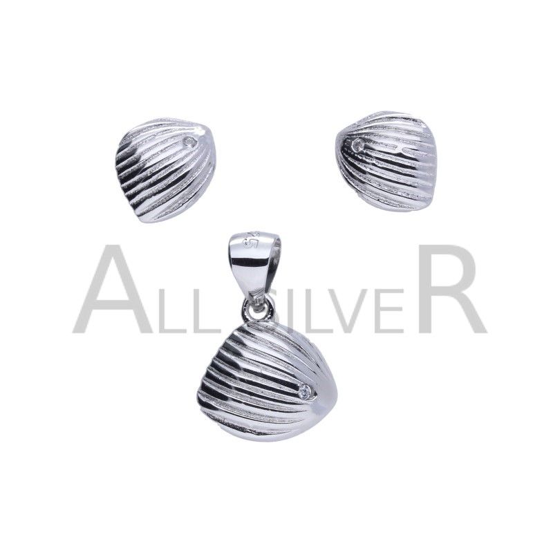 SET – HERZBECHER, OHRRINGE + ANHÄNGER, WEISSER ZIRKONIA, 925 SILBER RHODIUMBESCHICHTET. MEERESMOTIVE. FISCHE, MUSCHELN.