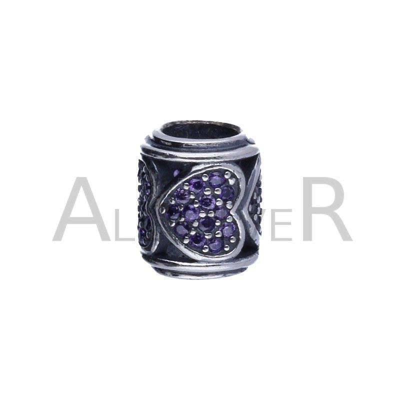 ARMBANDANHÄNGER, 925 SILBER RHODINIERT, AMETHYST ZIRKONIA, SYMBOLISIERT DAS GLÜCK IN DER LIEBE, PASST ZU STANDARD-MODULARARMBÄNDERN MIT EINEM DURCHMESSER VON 3 MM, ABMESSUNGEN 10 MM X 10 MM.