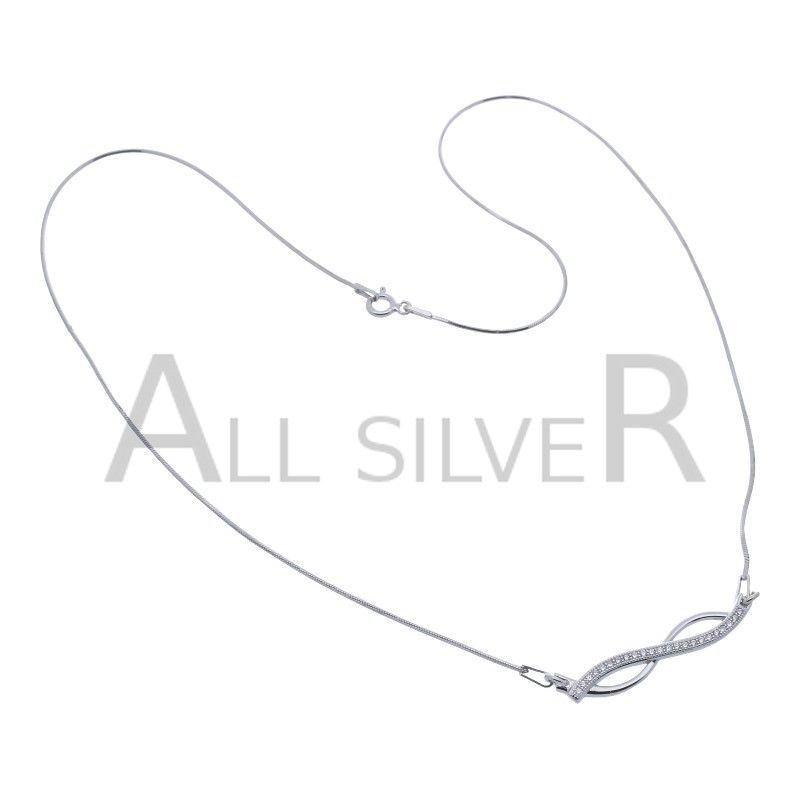 925 SILBER HALSKETTE, RHODINIERT, WEISSER ZIRKONIA, 42+3CM VERLÄNGERUNG, LEICHTE VERSION AM KABEL 8L020.