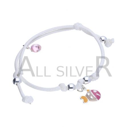 FISCH-ARMBAND, GEWACHSTE SCHMUCKKETTE IN WEIßEN 925-SILBER-ELEMENTEN, BUNTE EMAILLE, VERSTELLBARE LÄNGE 12-20CM.