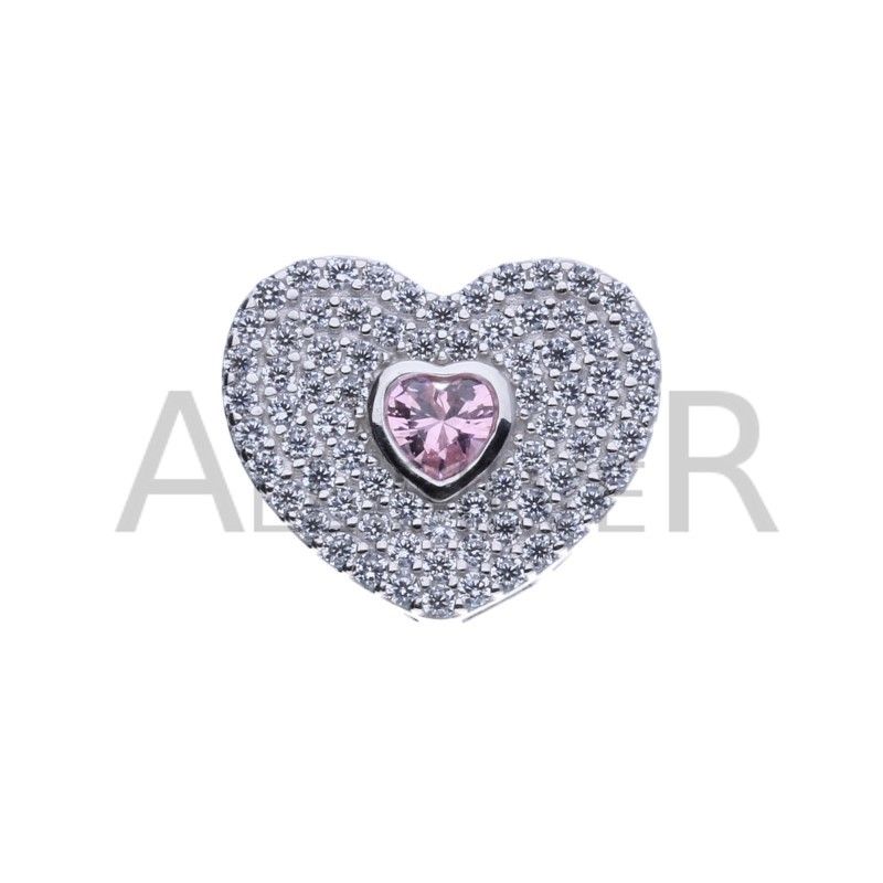 ANHÄNGER, 925 SILBER, RHODIUMBESCHICHTET, HERZ, WEISSER ZIRKONIA, ZIRKONIA ZENTRAL ROSA, CA. 15 MM HÖHE.