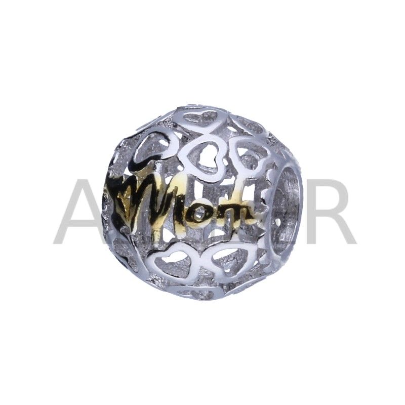 Der durchbrochene Anhänger passt zu modularen Perlenarmbändern mit einem Durchmesser von 3 mm, einer Kombination aus 925er Silber, rhodiniert und 24 Karat vergoldet, Mutter, Herzen.