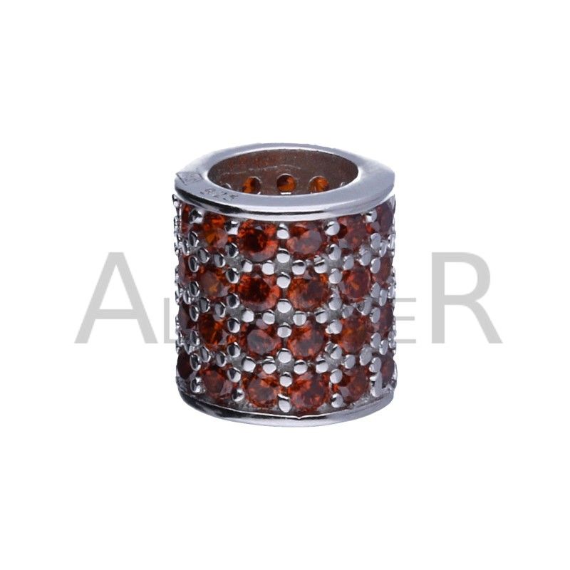 PERLENANHÄNGER GEEIGNET FÜR MODULARE ARMBÄNDER MIT EINEM DURCHMESSER VON 3 MM, 925 SILBER, RHODINIERT, ZIRKONIA-GRANAT, ZYLINDER.
